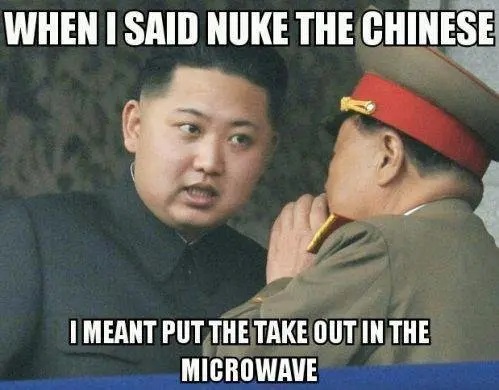 Kim Jong-Un called Xi Jinping at 3 AM one morning. Xi: Why are you calling me in the middle of the night? Jong-Un: Because I am going to launch a nuclear missile at South Korea. Xi: When? Jong-Un: 10. Xi : 10 what? Days? Weeks? Months? Jong-Un: 9…